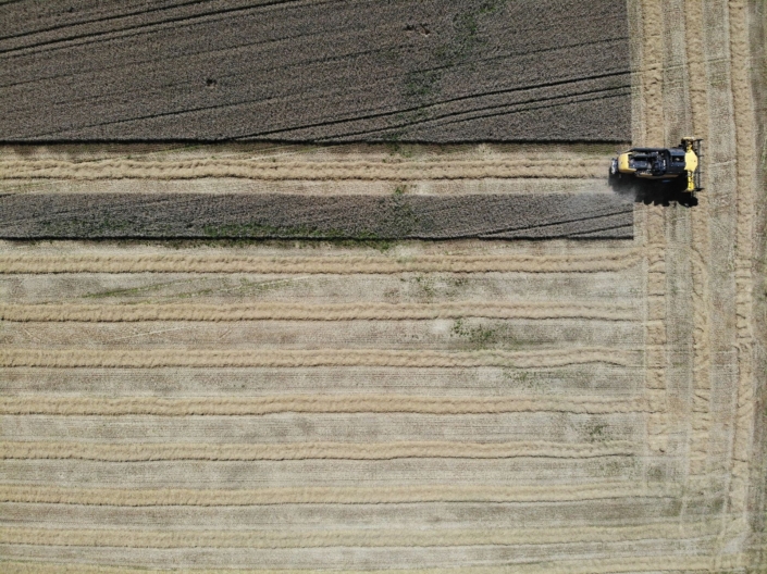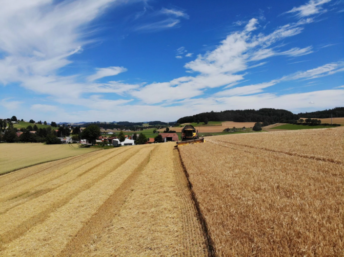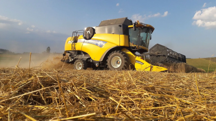 Die Lohndrescharbeit wird mit mehreren Mähdreschern erledigt.