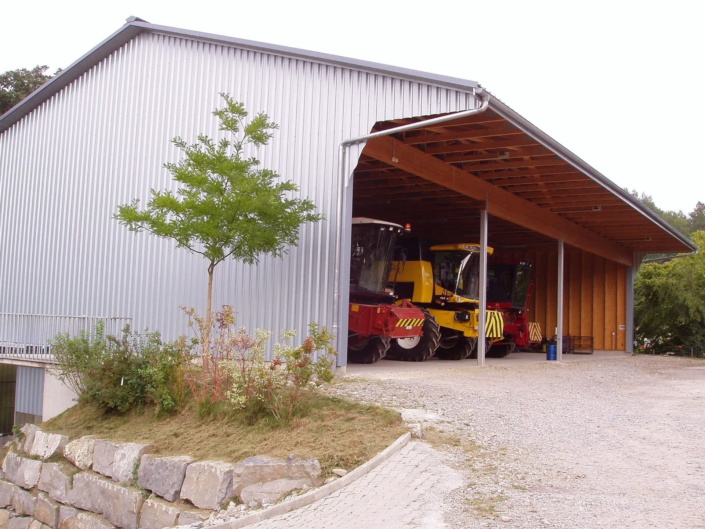 Die Lagerhalle im Norden unseres Geschäftsareals bietet Platz, um Erntemaschinen und Boote vom Wetter geschützt zu überwintern.