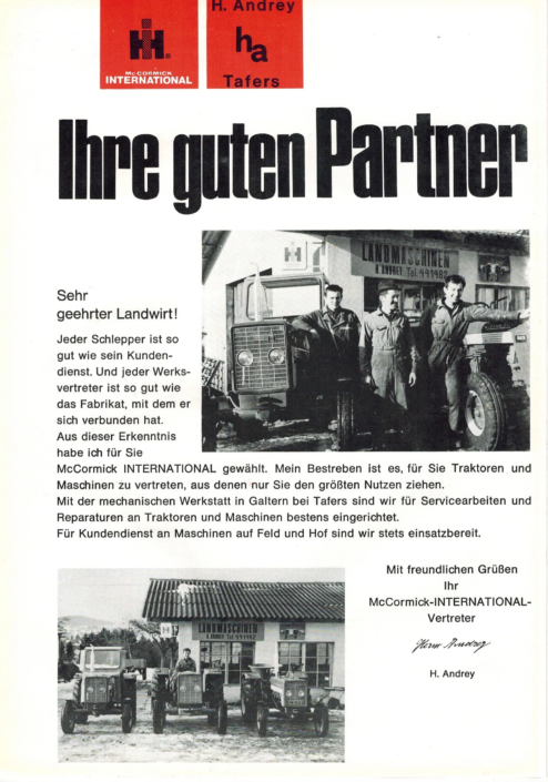 Beratung, Verkauf, Reparatur und Unterhalt von Traktoren, Landmaschinen, Forst- und Kleingeräten gehören zu unseren Dienstleistungen.